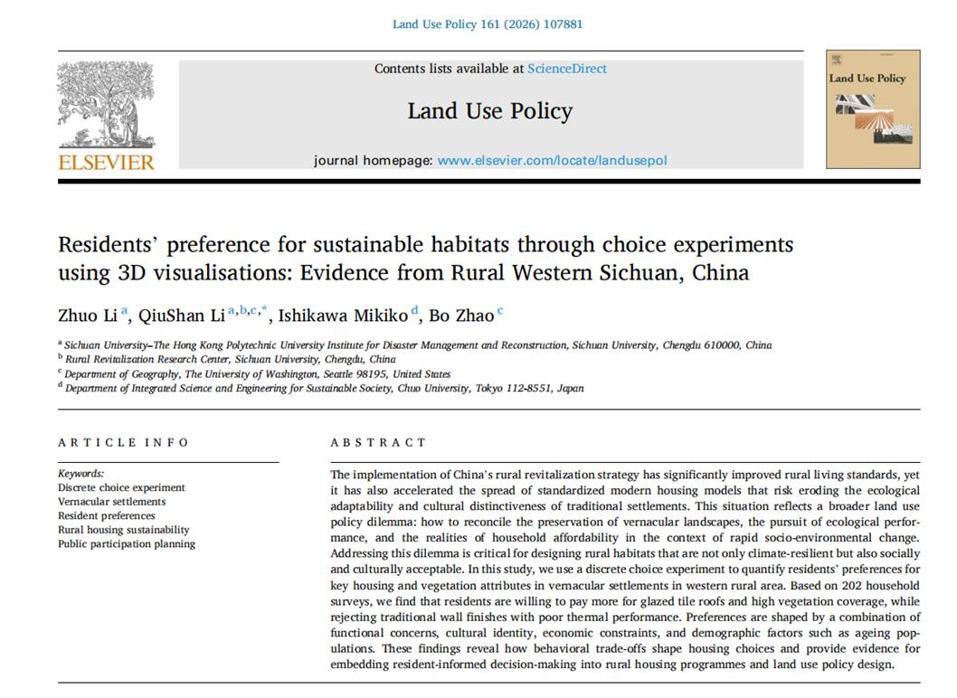 城市安全健康与管理系在国际权威期刊发表乡村人居环境研究成果
