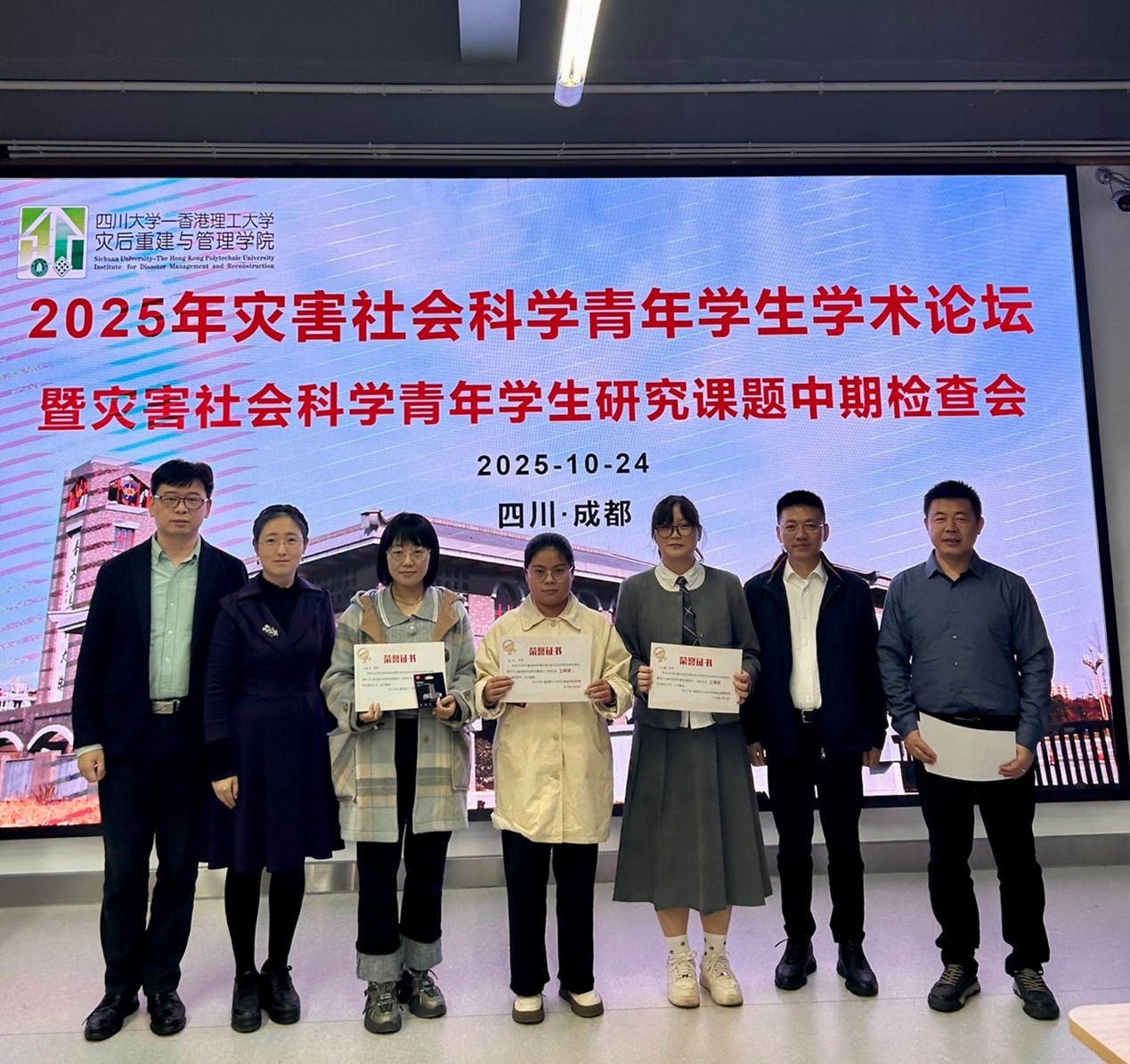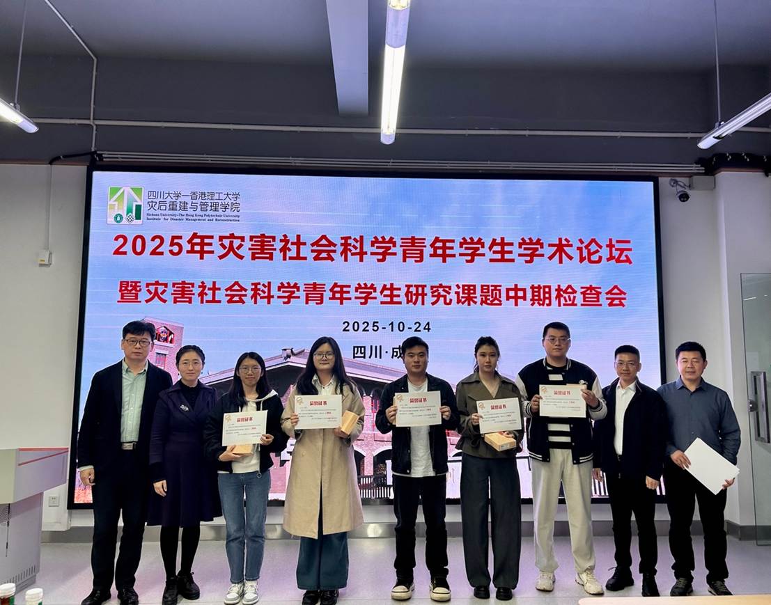 10月24日下午,灾后重建与管理学院成功举办“2025年灾害社会科学青年学生学术论坛暨灾害社会科学青年学生研究课题中期检查会”。学院党总支书记陈勇出席论坛并致辞,副院长卢毅教授、四川农业大学甘露教授、成都理工大学敖仪斌教授担任论坛评委。论坛由城市安全健康与管理系主任田兵伟副教授主持。