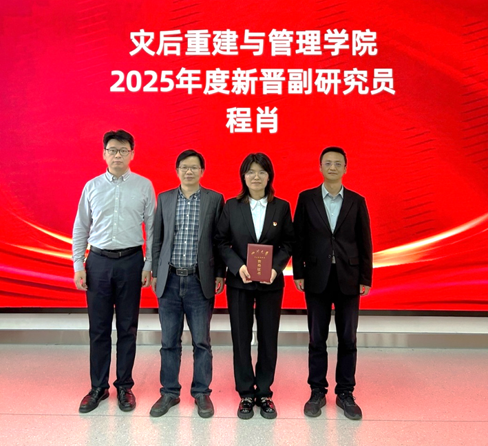 4月23日下午,灾后重建与管理学院在C110会议室举行新晋副高级专业技术职务聘任仪式。学院领导班子成员、全院教职工、学生代表等参加了聘任仪式。仪式由学院党总支副书记、副院长周家文主持,卢毅副院长宣读聘任决定。
