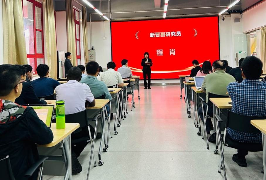 新晋副研究员程肖作为代表发言。她感谢学院搭建的成长平台与悉心培养,并从坚守育人初心、精进教学科研和服务学院发展三个方面表达了今后的努力方向。她表示,在学院当前推进本科专业建设的关键时期,将主动担当、积极作为,以更加饱满的热情和更加扎实的作风坚守教育一线,不辜负学校的信任与师生的期许。