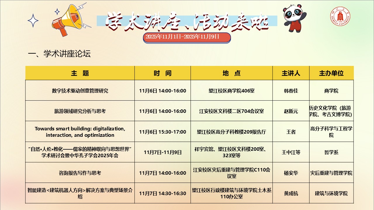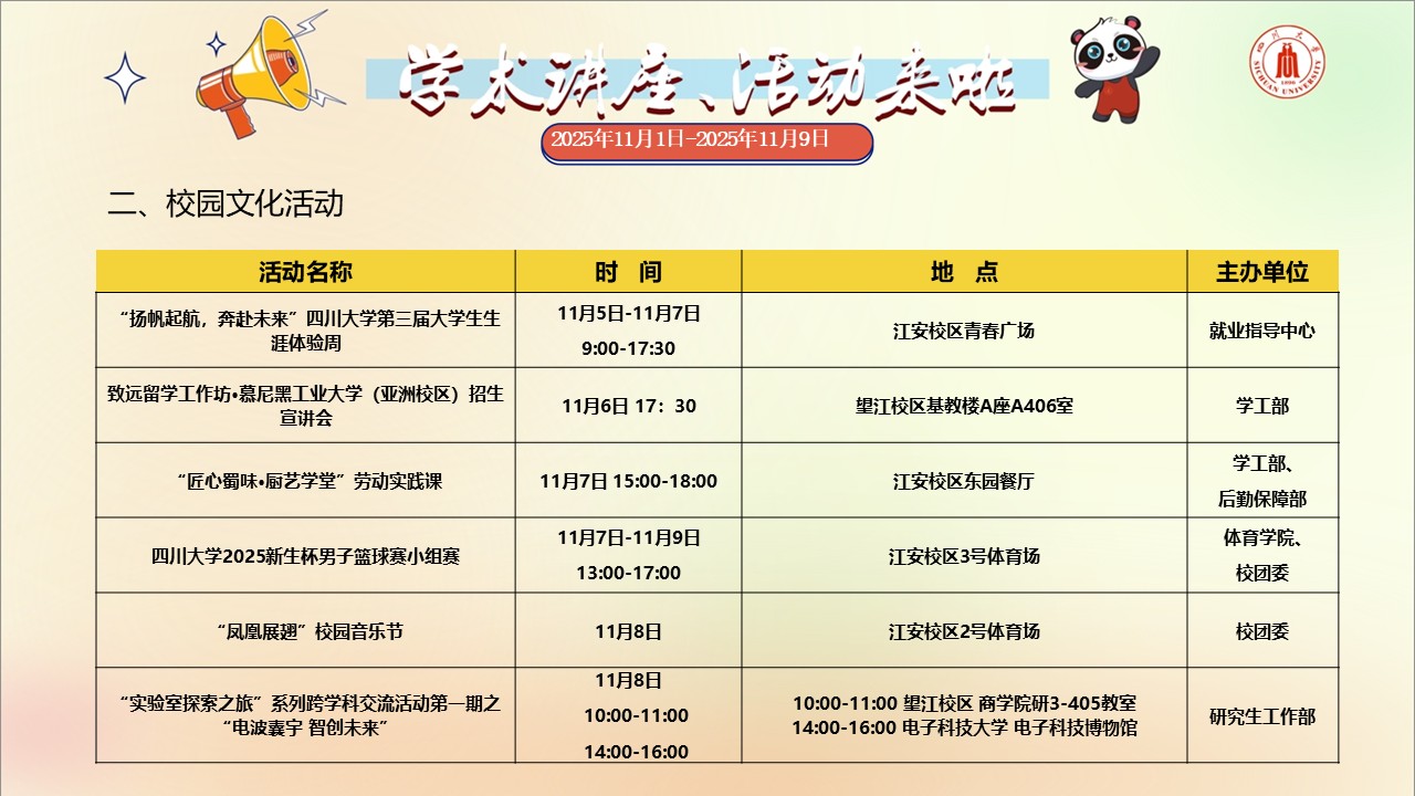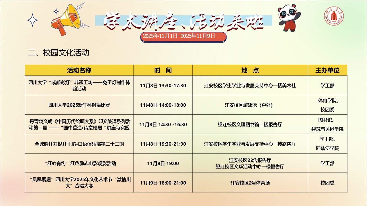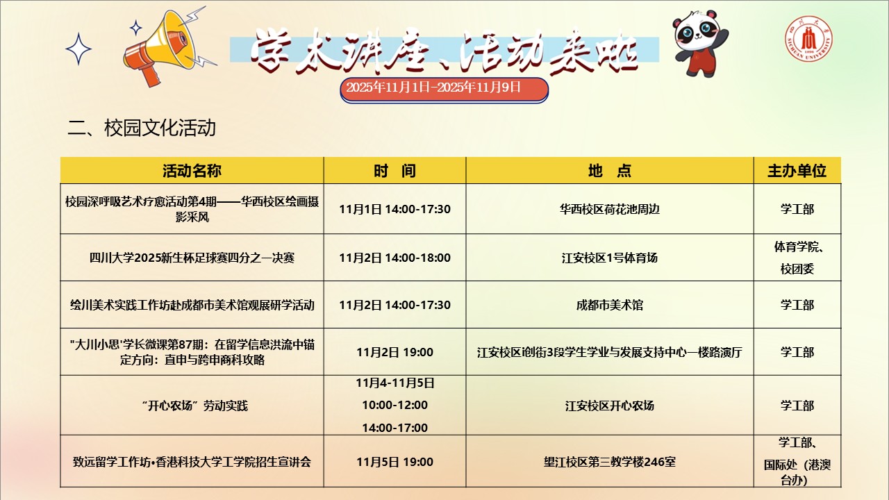 四川大学2025年11月1日-11月9日学术讲座和校园文化活动预告