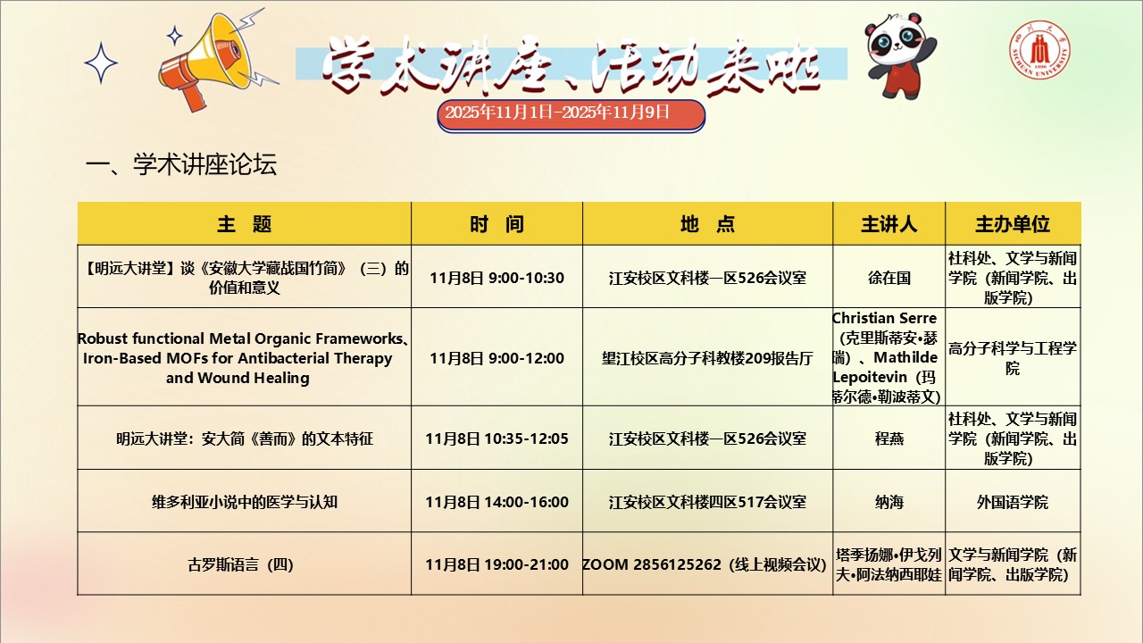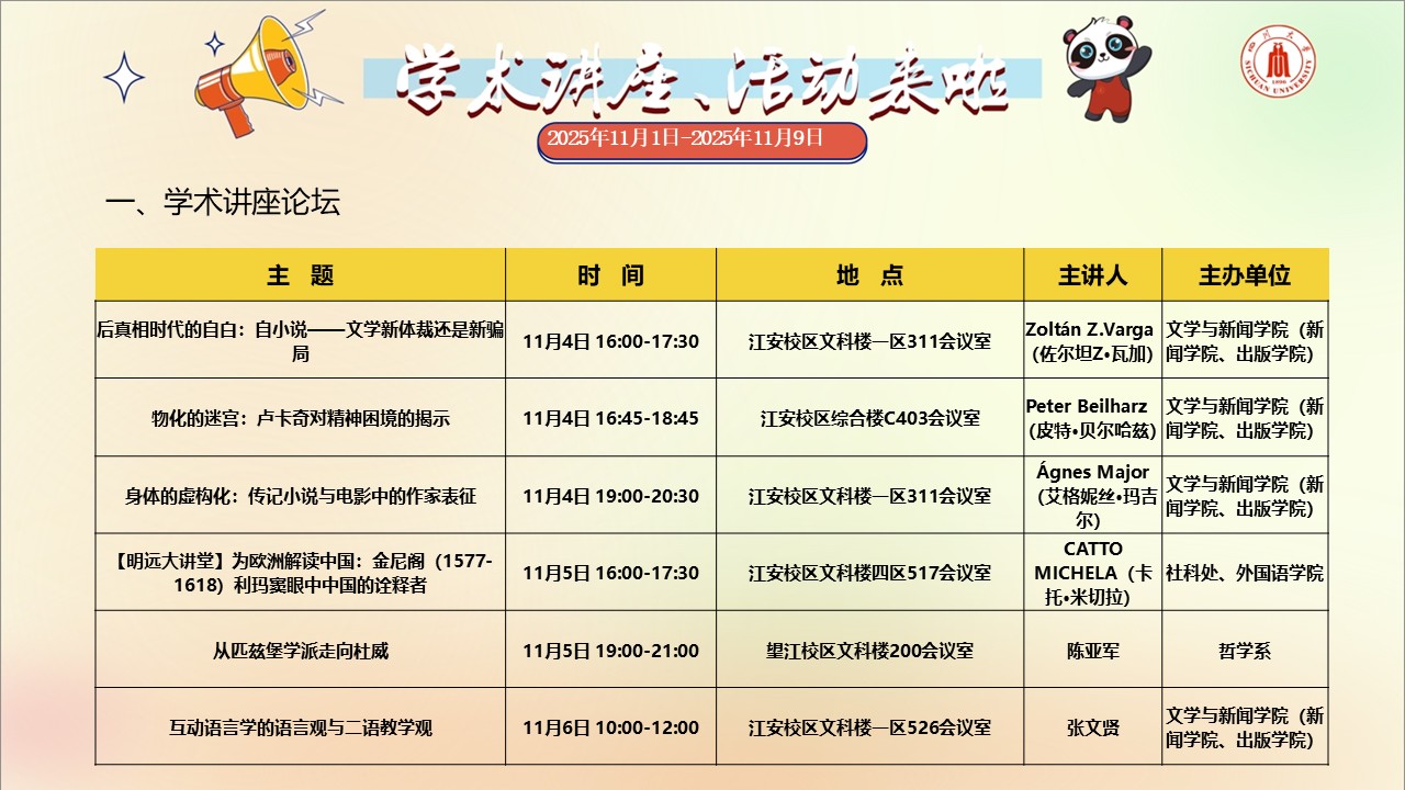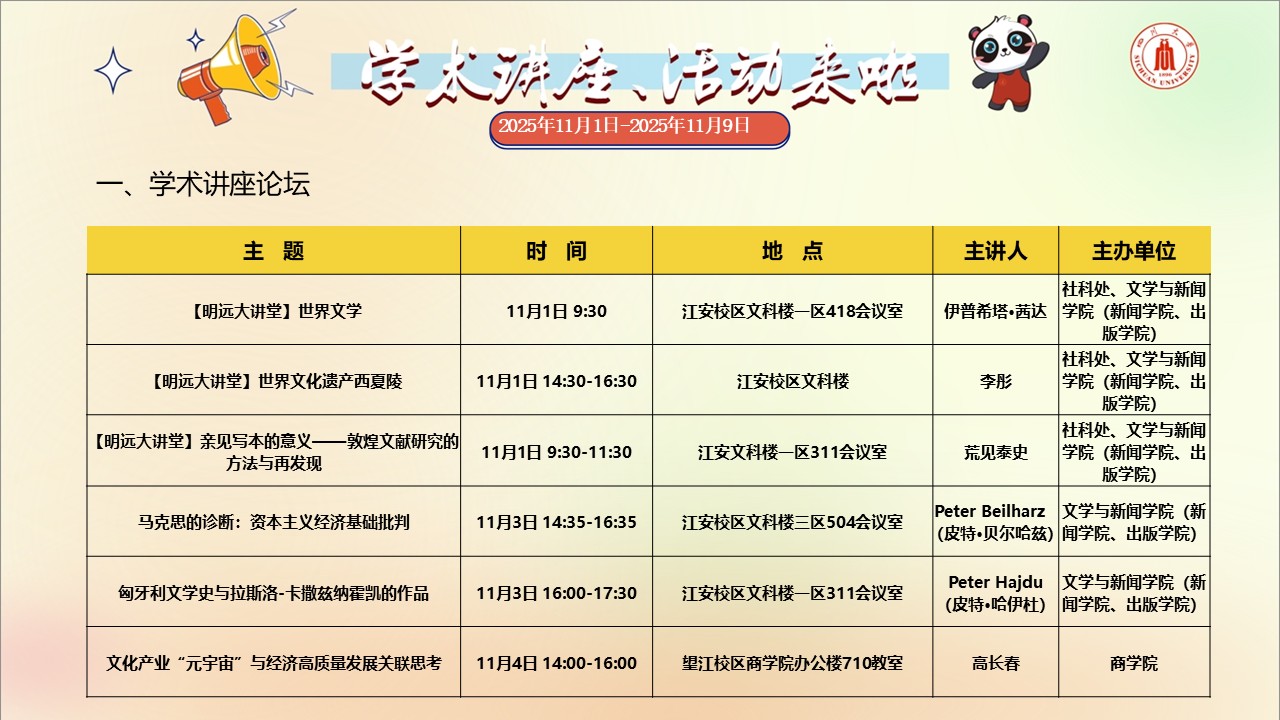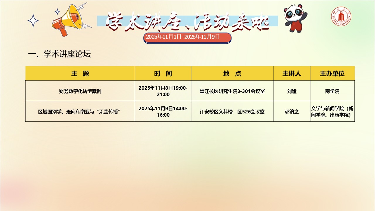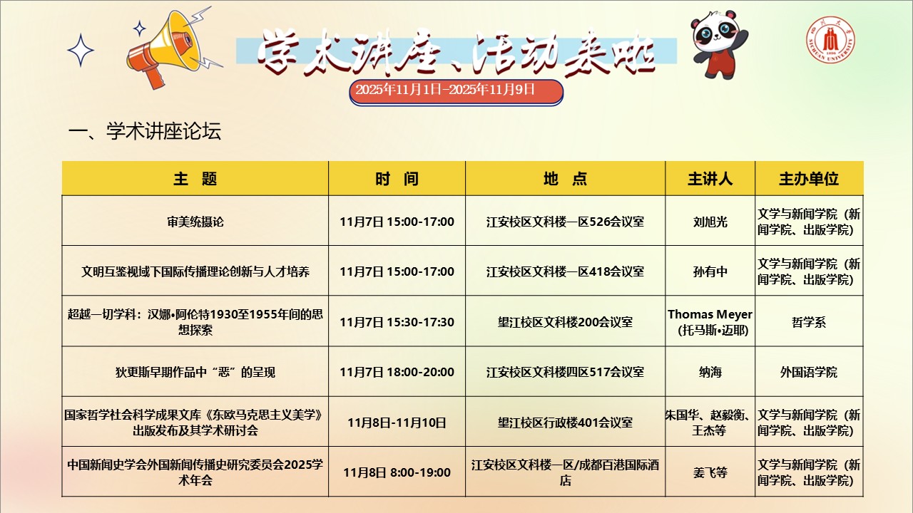 四川大学2025年11月1日-11月9日学术讲座和校园文化活动预告