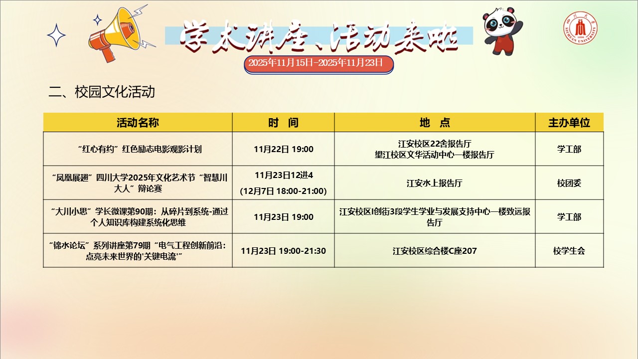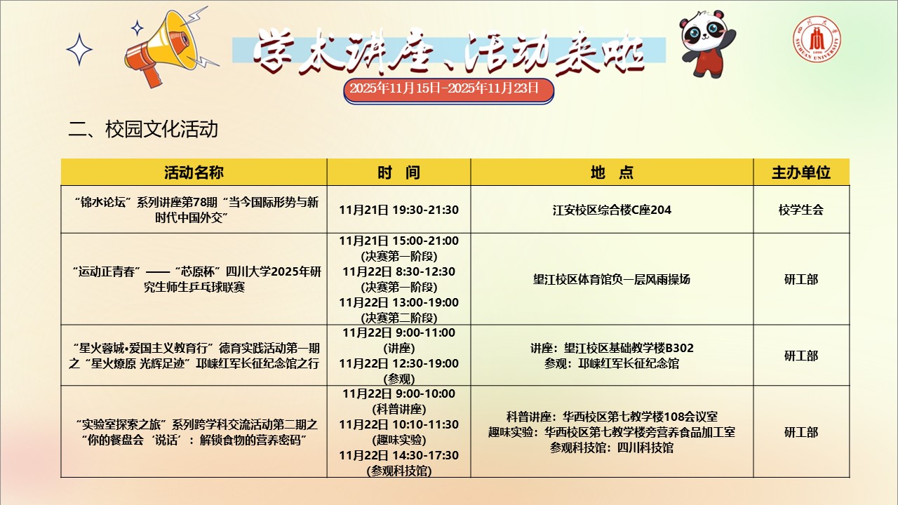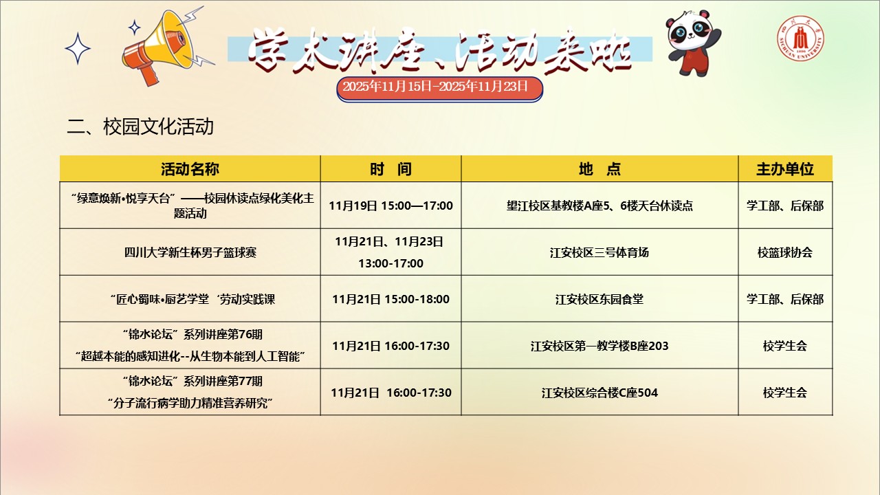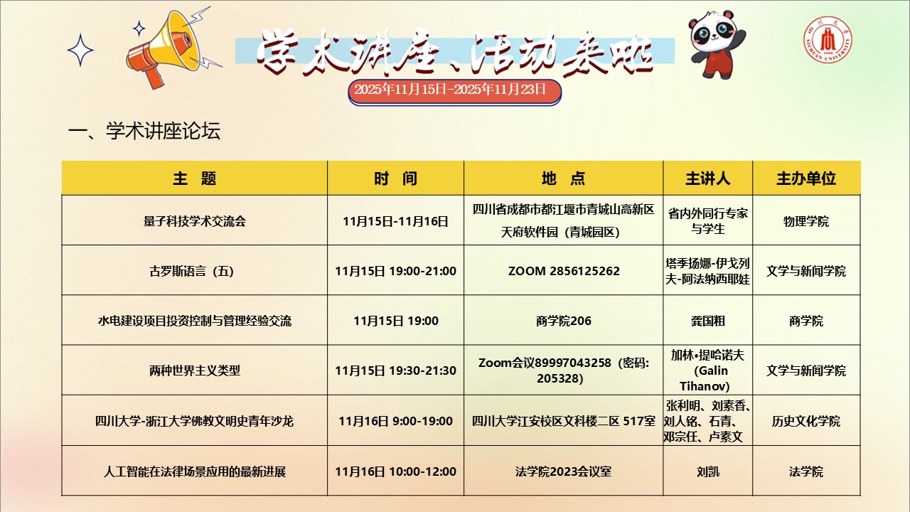 四川大学2025年11月15日-11月23日学术讲座和校园文化活动预告