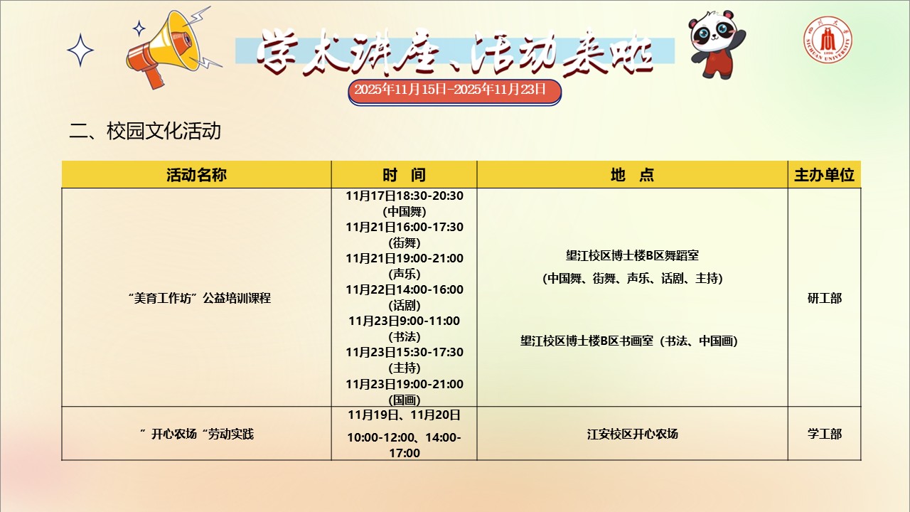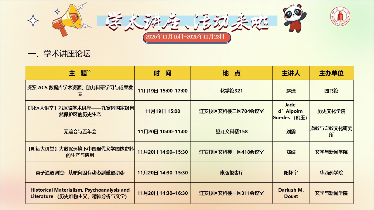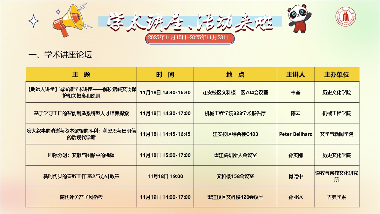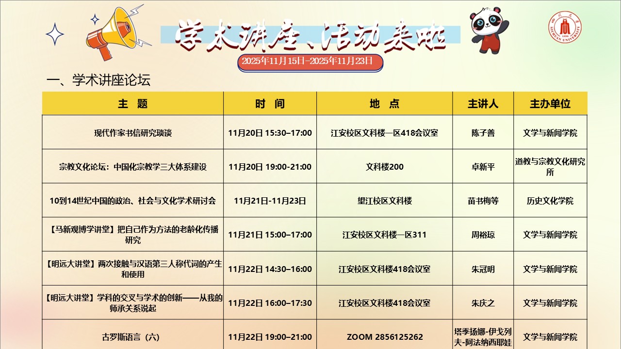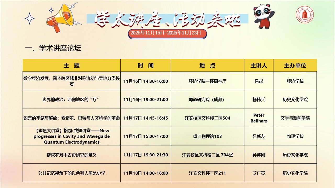 四川大学2025年11月15日-11月23日学术讲座和校园文化活动预告