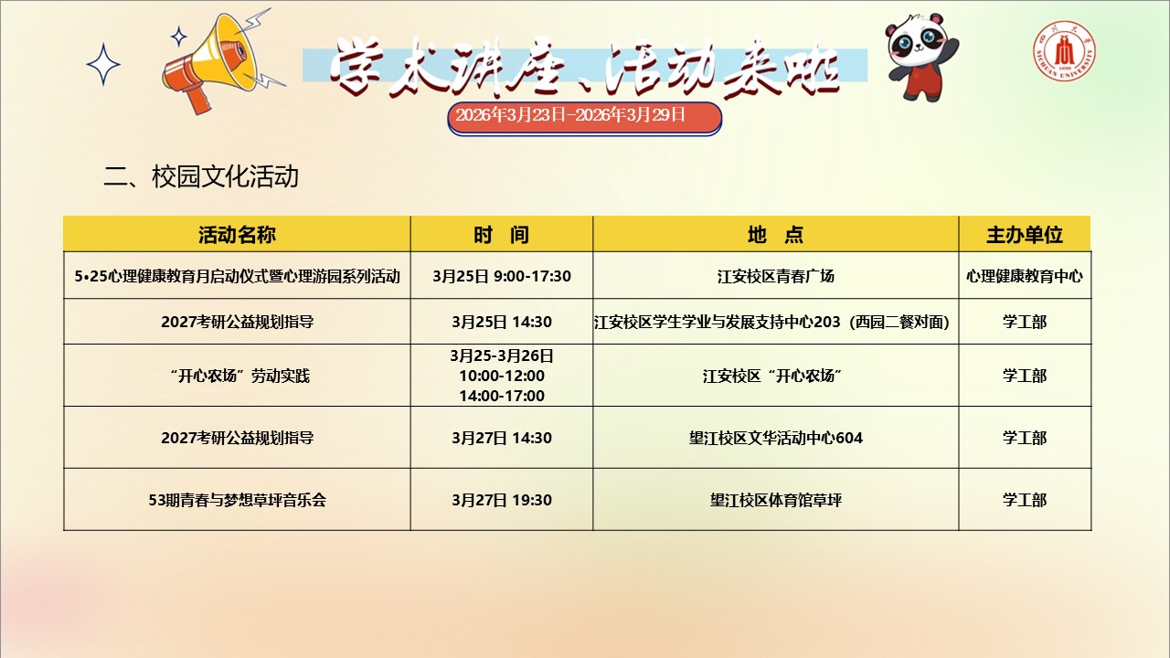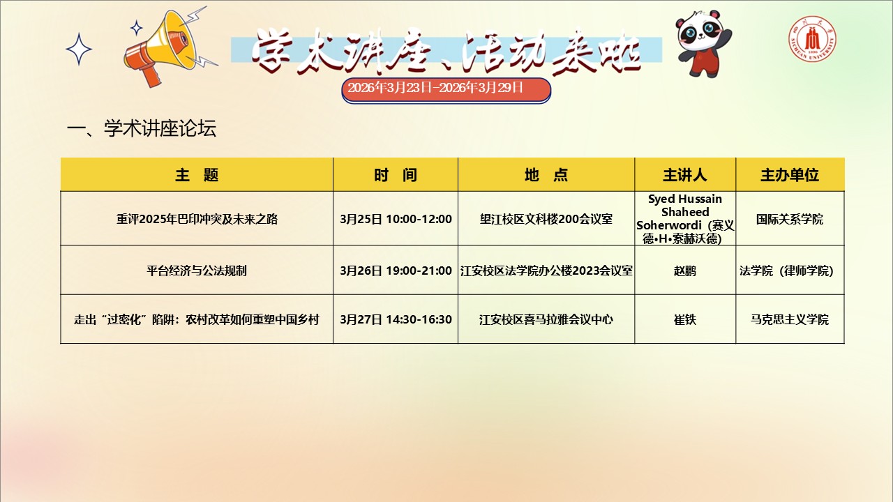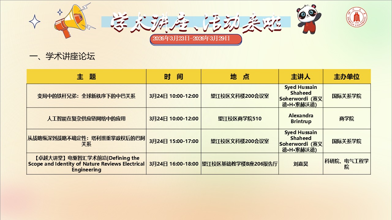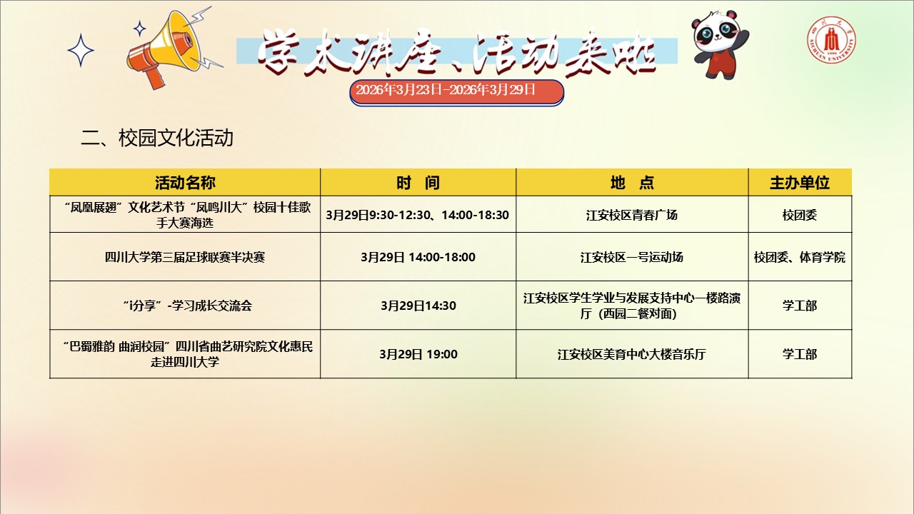 四川大学2026年3月23日-3月29日学术讲座与校园文化活动预告