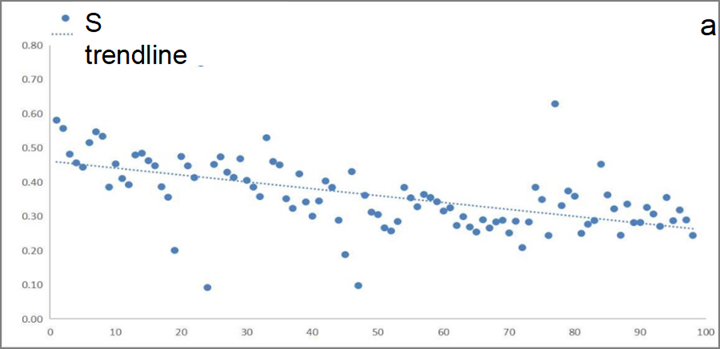 研究区域内寺庙的建筑规模(CA)差异显著。通过叠加OSR与CA的数据,显示OSR通常随CA增大而降低,呈现线性递减趋势(图5a)。对寺庙进行景观形态指数(LSI)计算,得出轴对称、多轴分散、中心孤立型寺庙布局的LSI分别为1.93、2.03、1.46,表明传统简约的空间结构能提升寺庙的开放空间比例。相比之下,具有多出口和通道的分散式结构则能增加寺庙开放空间的数量和布局(图5b、5c)。