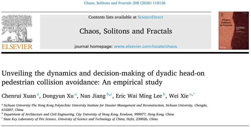 近日,我院师生在行人与应急疏散动力学领域取得新进展,相关成果分别发表于安全科学领域权威期刊《Safety Science》和非线性科学领域权威期刊《Chaos, Solitons and Fractals》上。