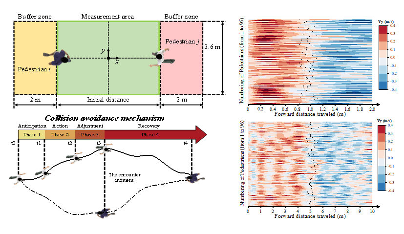 我院在读博士生宣陈锐(第一作者)、谢玮副研究员(通讯作者)发表于《Chaos, Solitons and Fractals》的研究,通过一系列可控实验揭示了行人冲突避让的关键机制。团队创新性地提出了“预判-行动-调整-恢复”四阶段避碰理论模型,并构建了基于成本收益(NPV)的决策分析框架。研究发现,行人的避碰决策始终以安全需求为核心,当主动避碰的边际收益降为零时,行人的策略会从“积累安全余量”转向“能量节约”模式。这一实验发现从本质机理上量化解释了人类避碰行为决策的内在机理。研究成果对于解决行人运动方向冲突、提高疏散效率具有重要意义。