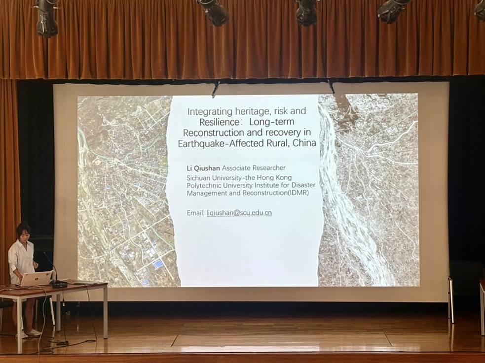 黎秋杉副研究员的报告题为 《Integrating Heritage, Risk, and Resilience: Long-Term Reconstruction in Earthquake-Affected Rural China》,基于在都江堰灌溉系统世界遗产地的长期实地调研,提出了面向历史聚落的灾后恢复决策框架。研究通过场景规划、参与式GIS(PPGIS)与模拟建模等多方法结合,探索如何在灾后重建中实现文化景观保护与可持续发展相结合。研究成果强调了自下而上社区声音与自上而下政策指导的衔接,展示了灾害恢复如何成为推动文化遗产保护、景观再生与长期韧性建设的重要契机。