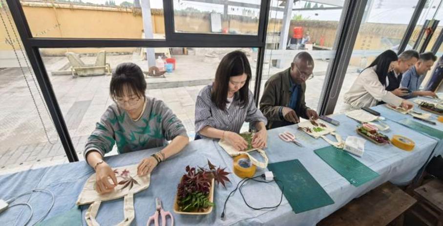 在植物拓染非遗体验环节,在工作人员指导下动手创作,以自然草木为材,感受传统手工艺的独特魅力。沉浸式实践既放松了身心,也让大家在静心创作中涵养专注严谨的治学态度,将匠心精神融入教学科研实践。