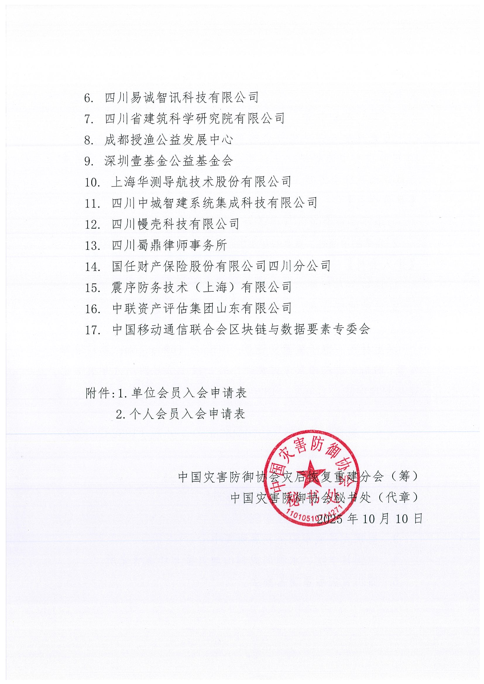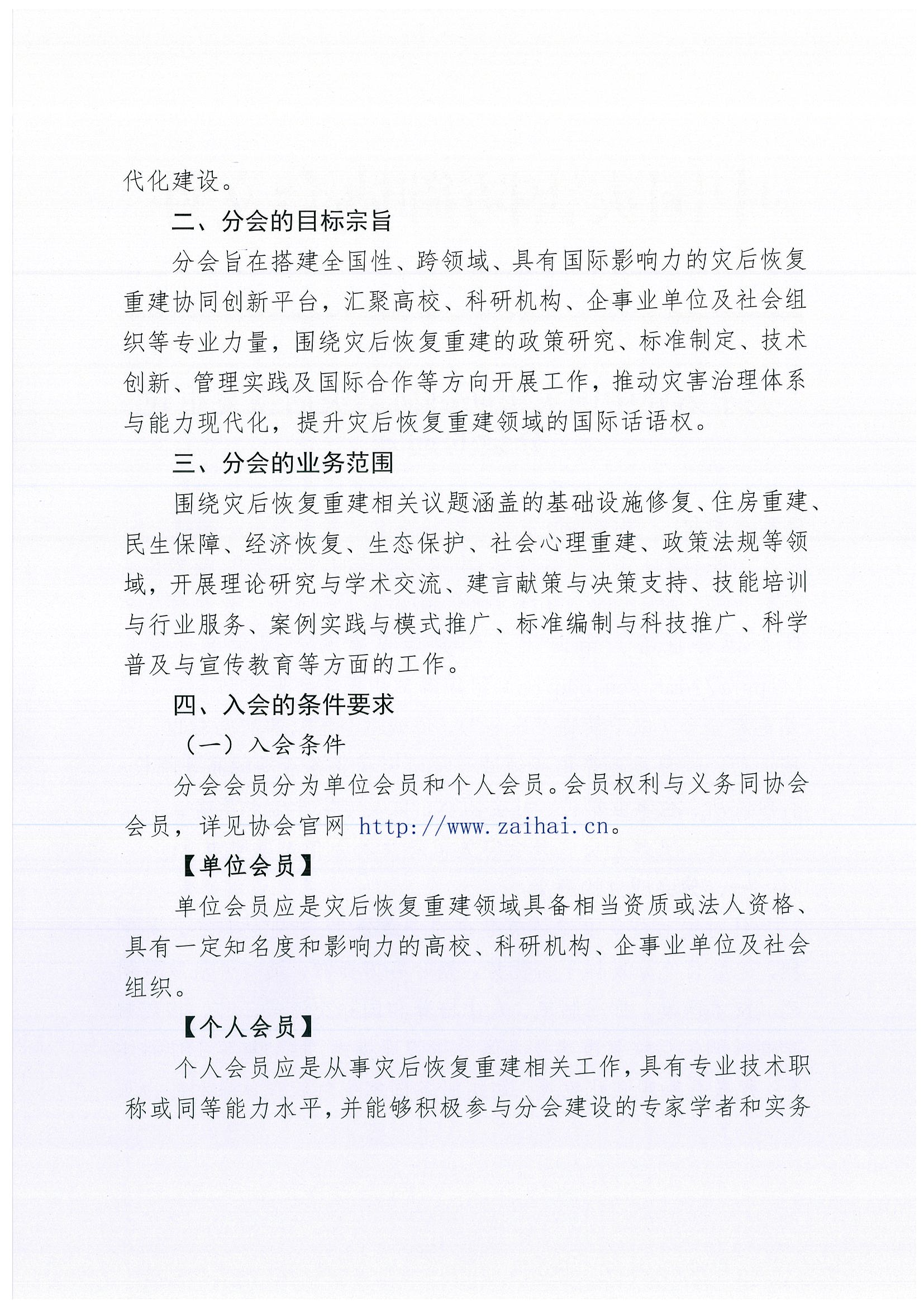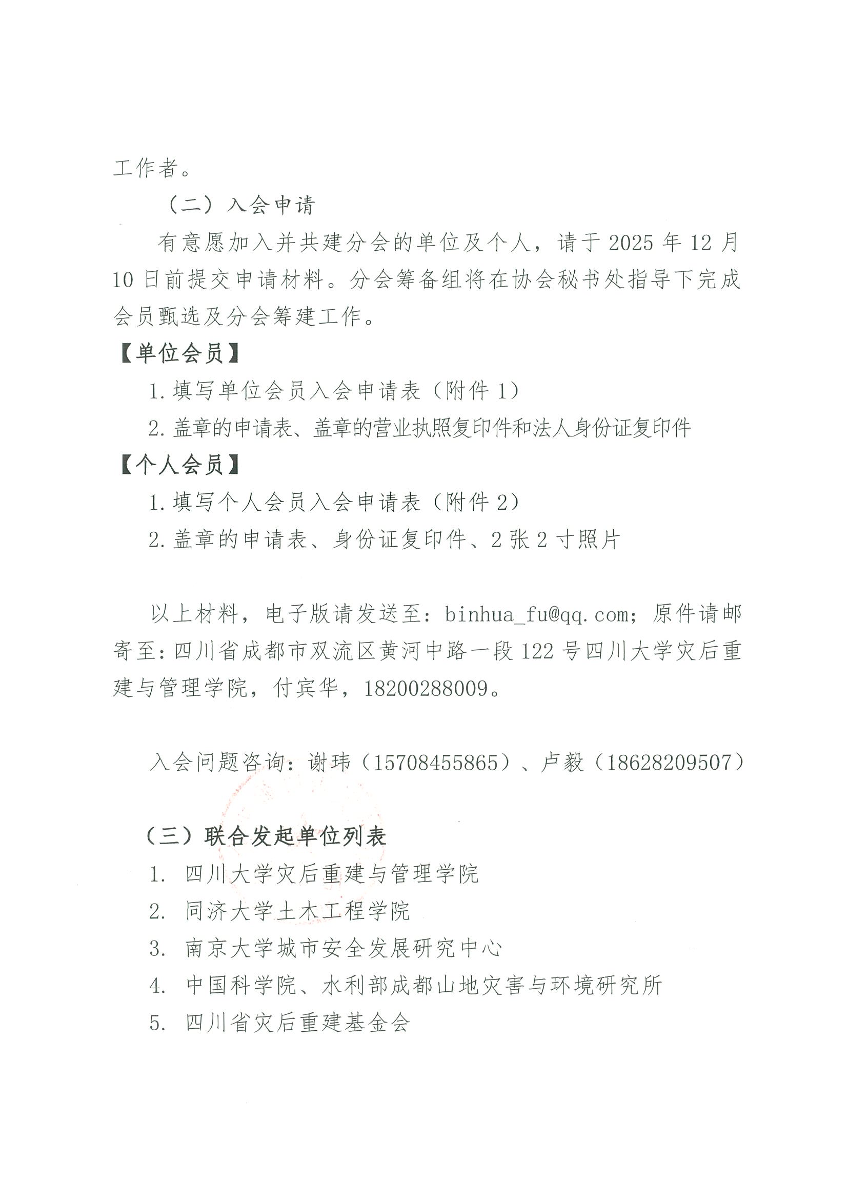 关于筹建中国灾害防御协会灾后恢复重建分会的通知